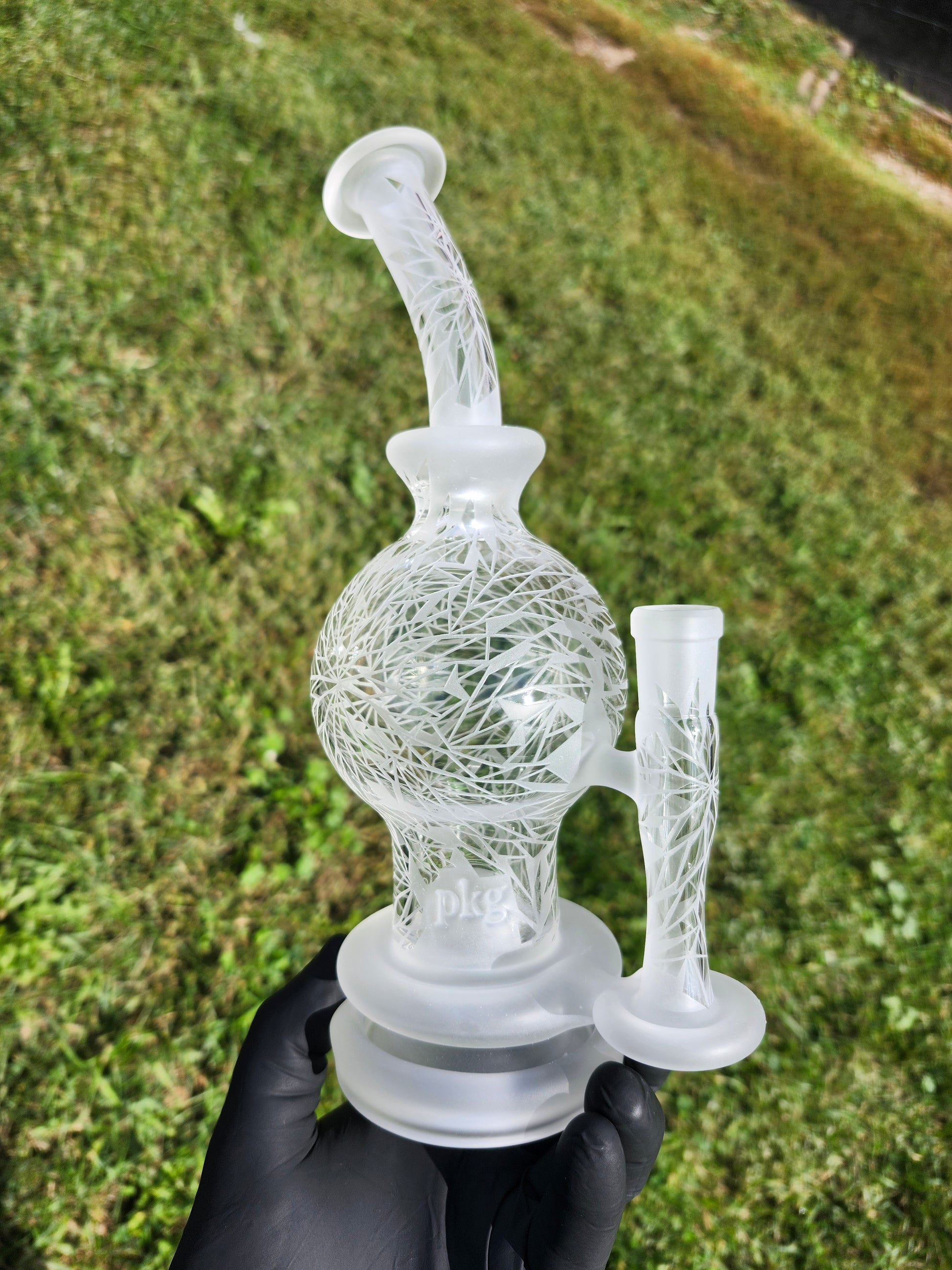 This ball rig was created by PKG and the the shattered pattern was Sandblasted by Dwreck.