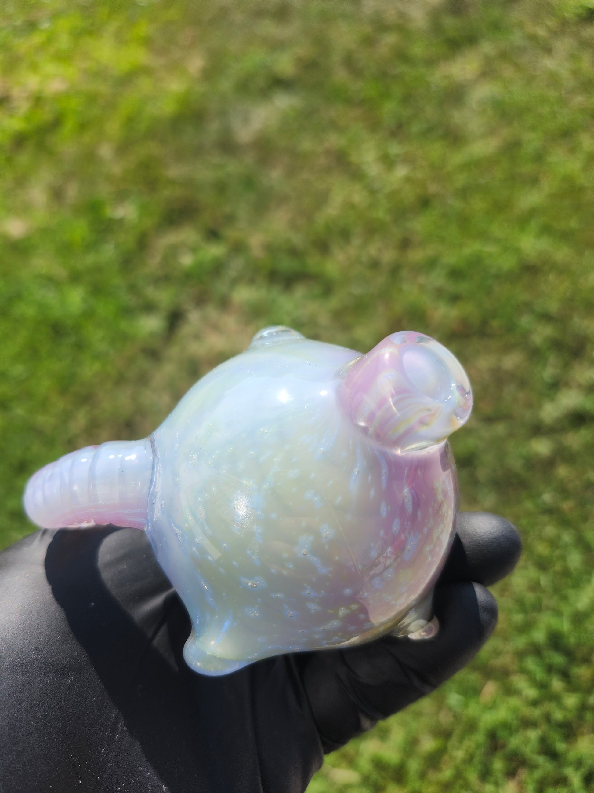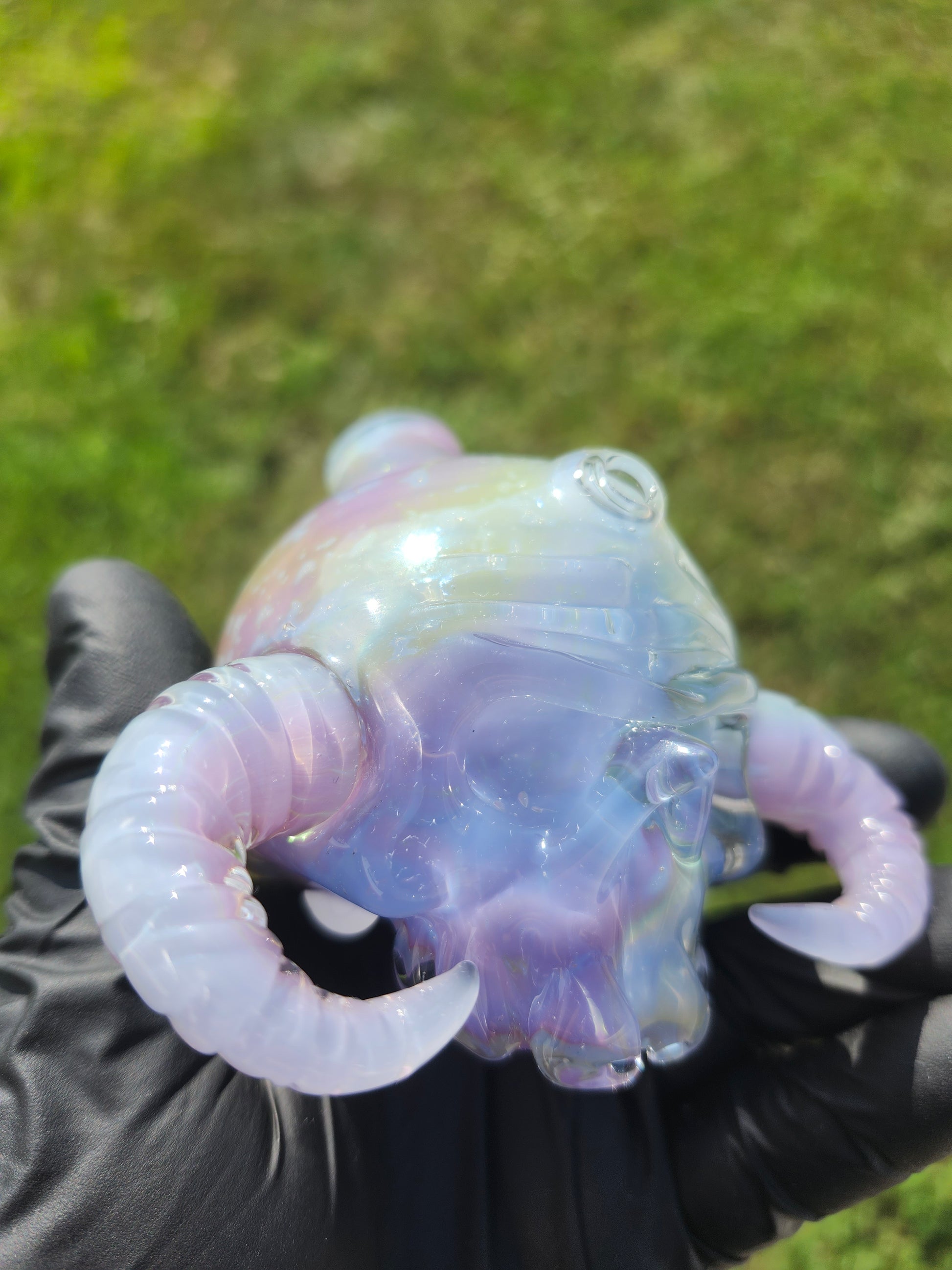 This one-of-a-kind collaboration is a first between these artists. Devils_own_glass created the fume prep. Where Grime glass used it in this skull rig
