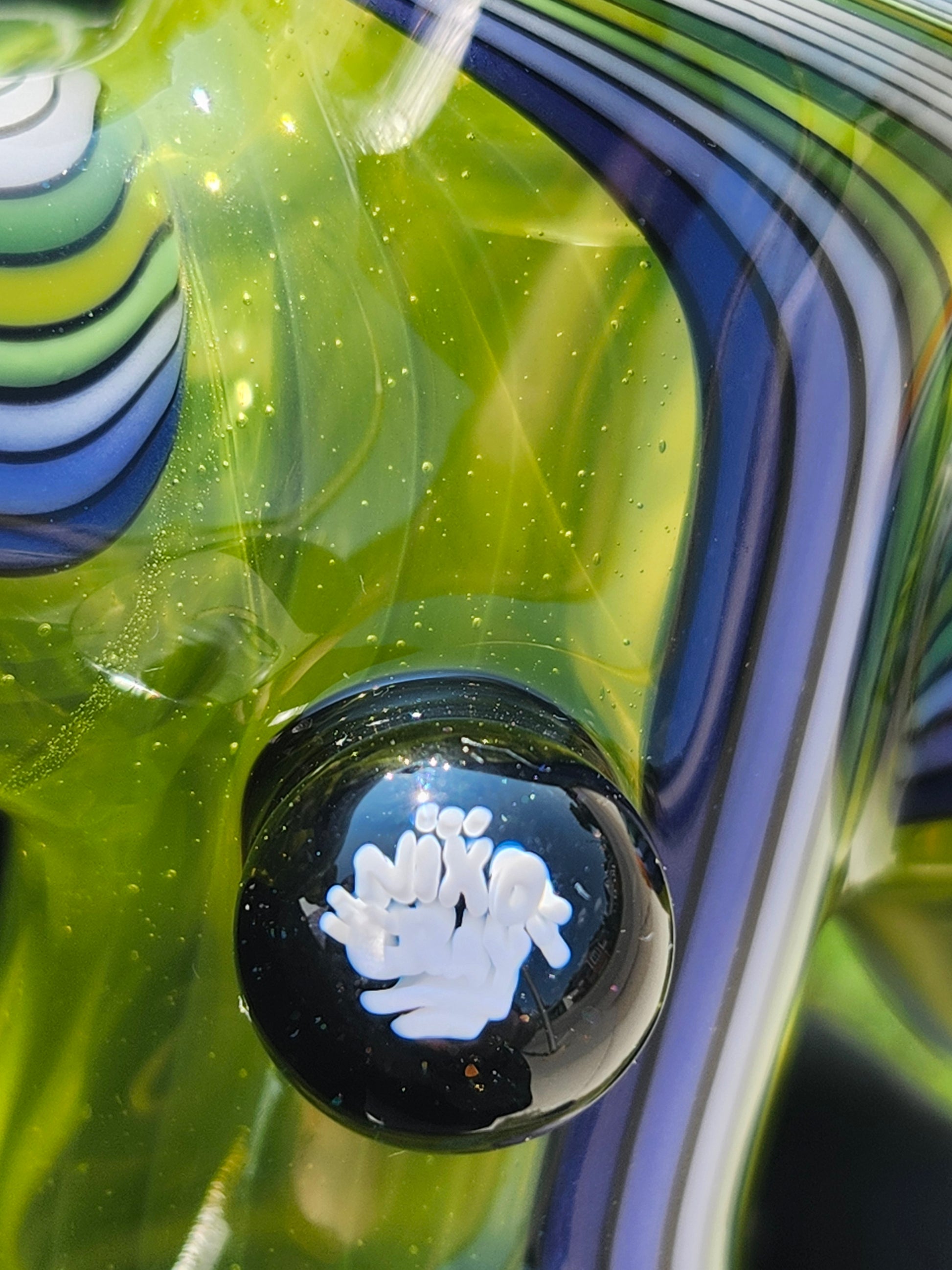 This classic hammer design, with 2 large linework sections and flared carb on the left. The snake head is made with 2 smaller linework sections and 2 millies for the eyes. Niko Crays Signature implosion on the right side