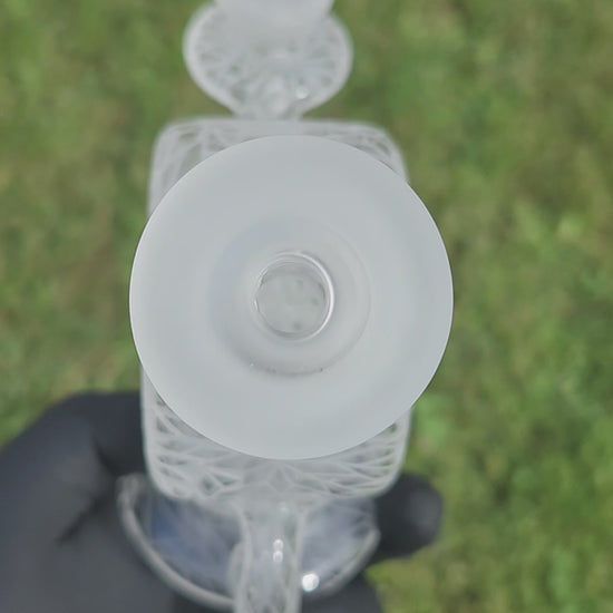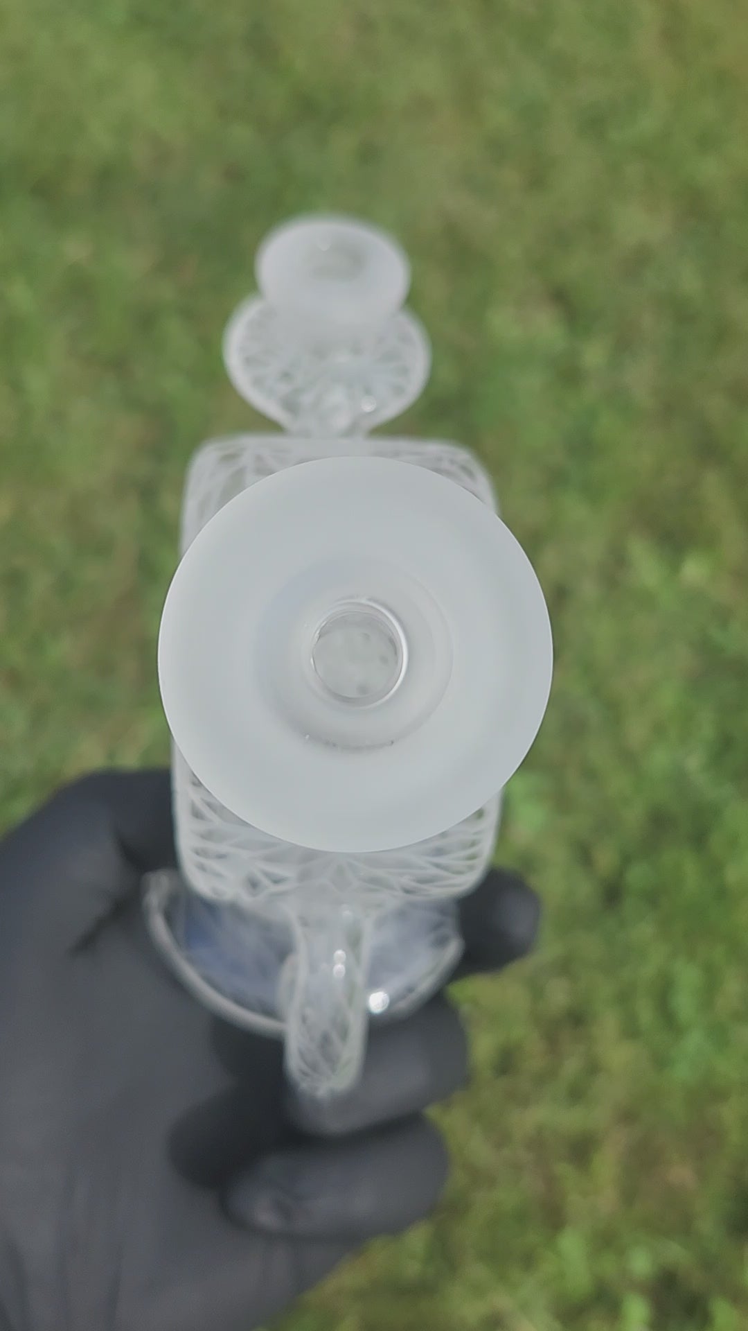 The piece was then sent to DWRECK where he sandblasted the entire thing in his shattered pattern design. 100's of individually placed pieces that create this shattered effect in glass.